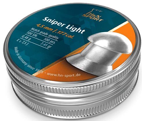 Пуля Sniper Light - это бочкообразная высокоскоростная пуля для соревнований. Она была разработана для Field Target соревнований с пневматическими винтовками с дульной энергией не более 16 Дж (калибр 4,5мм). Это семейство пневматических пуль включает также пули Sniper Medium и Magnum. Рекомендуемая дульная энергия для калибра 5,5 мм - от 16 Дж и выше. Оптимальная область применения – 50 м.