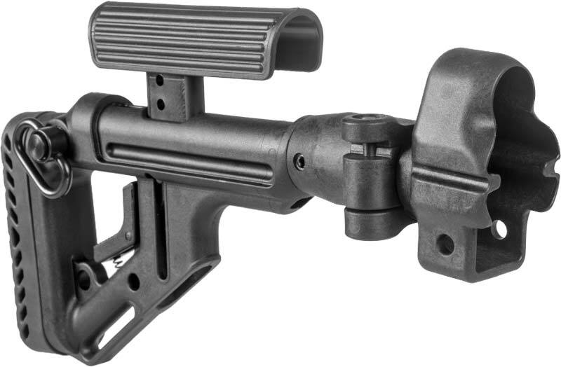 Приклад изготовлен из ударопрочного пластика, складывается на правую сторону.