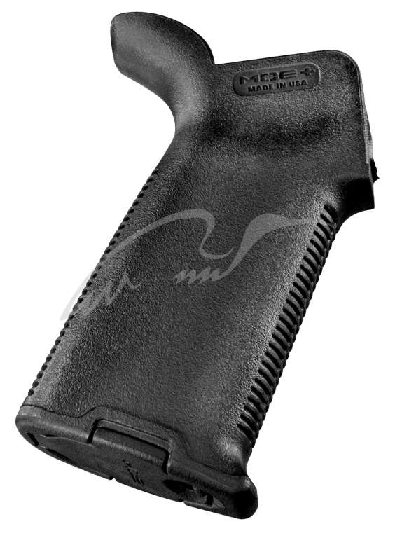 Пистолетная рукоятка Magpul MOE+ Grip на AR-15, M16 отличается улучшенной эргономикой и более рельефным профилем в сравнении с классической рукояткой. Рукоять изготовлена из ударопрочного полимера, а также имеет рифленую поверхность, что повышает надежность фиксации рукояти даже в перчатках и влажными руками. Также, на рукояти есть насечки, которые позволяют более прочно держать рукоять.