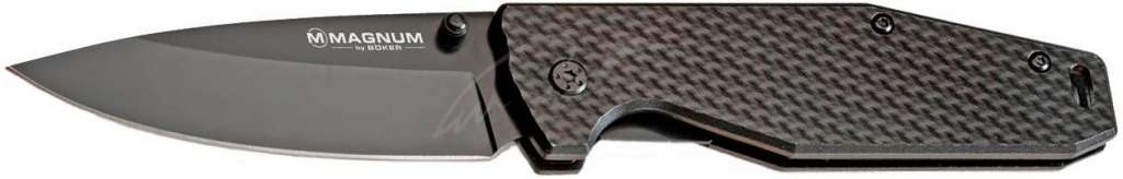 Рукоять с накладками из текстурированного алюминия, не скользит и существенно уменьшает общий вес ножа. Замок – традиционный для Boker Magnum Liner Lock. Также эта модель дополнена стальной клипсой и отверстием для темляка.