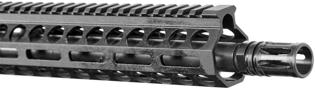 Легкое и тонкое консольное алюминиевое цевье длиной 15 дюймов оснащено интерфейсом M-Lok - для установки дополнительных аксессуаров (рукоятей переноса огня, сошек, тактических фонарей, лазерных целеуказателей и т.д).