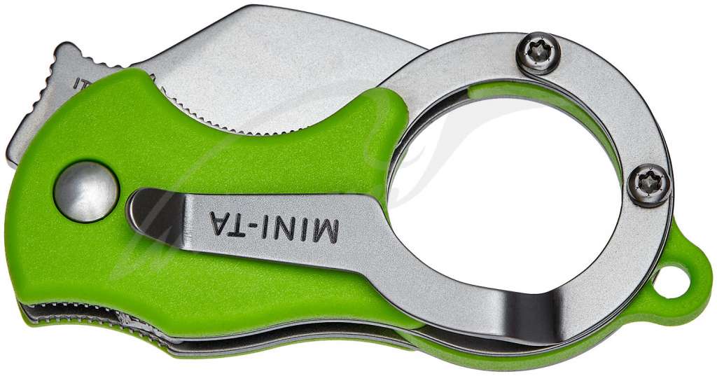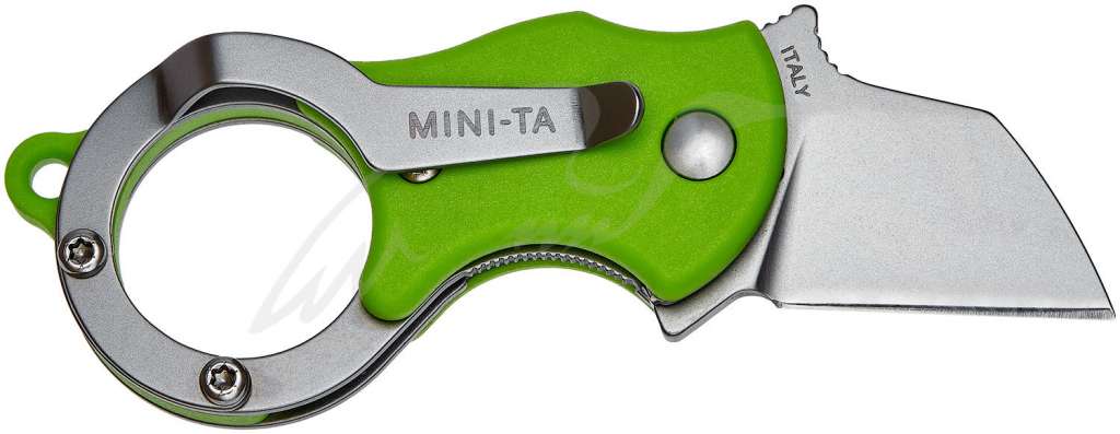 Нож серии Mini-TA предназначен для ежедневного ношения, причем, носить его по причине наличия клипсы можно в кармане, а можно – на кольце с ключами, потому что весит он всего 30 граммов и имеет в навершии специальное отверстие.