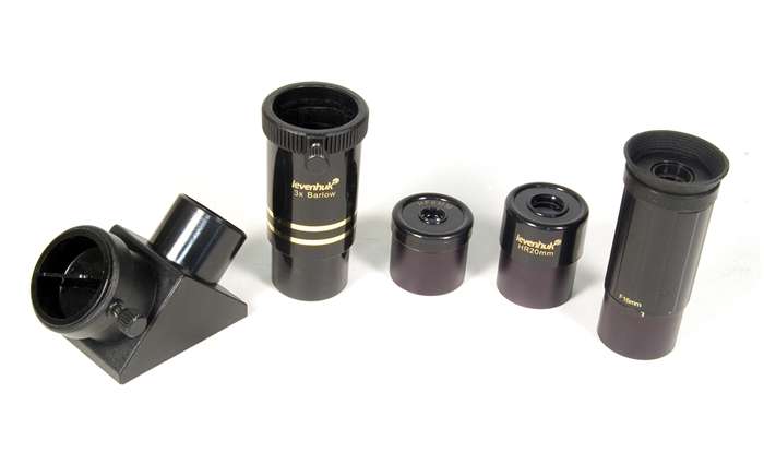 Ахроматический объектив формирует четкое изображение, практически лишенное хроматических аберраций. Данная модель комплектуется двумя окулярами с постоянным фокусным расстояниям и одним зум-окуляром. Помимо этого, в комплект входят трехкратная линза Барлоу и диагональное зеркало, а также другие полезные аксессуары. Азимутальная монтировка проста в управлении. Тренога регулируется по высоте.