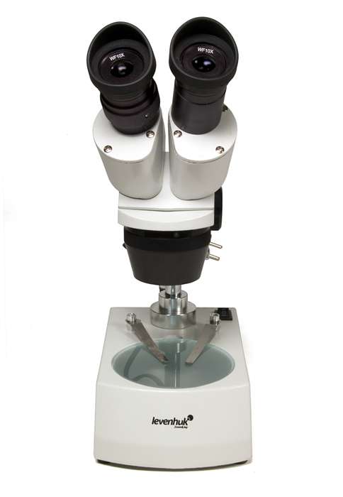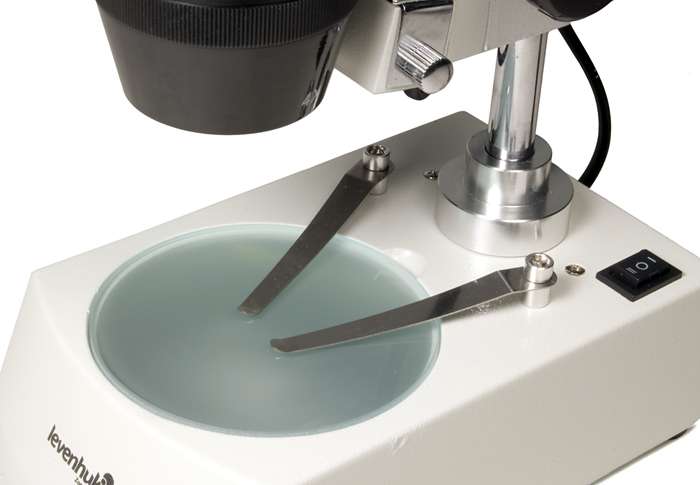 Микроскоп Levenhuk 3ST имеет верхнюю и нижнюю встроенную подсветку, а также удобный двусторонний предметный столик, который можно поворачивать светлой или темной стороной вверх. Для надежной фиксации препарата предметный столик оснащен двумя специальными зажимами.