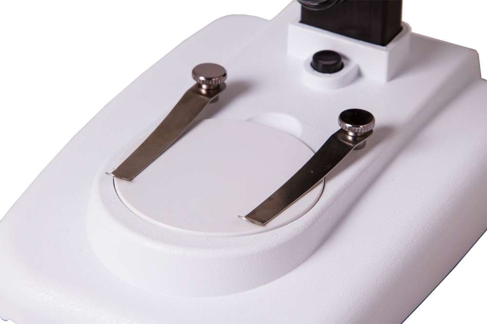 Все оптические элементы сделаны из стекла высокой прозрачности, что дает возможность рассматривать в образцах мельчайшие детали. Увеличение микроскопа составляет 20 крат, изменять его нельзя. Микрообразцы фиксируются на неподвижном предметном столике (белая пластина) при помощи двух металлических препаратодержателей. При необходимости можно включить подсветку – светодиод расположен в верхней части микроскопа, для его питания используются две батарейки типа АА (приобретаются отдельно).