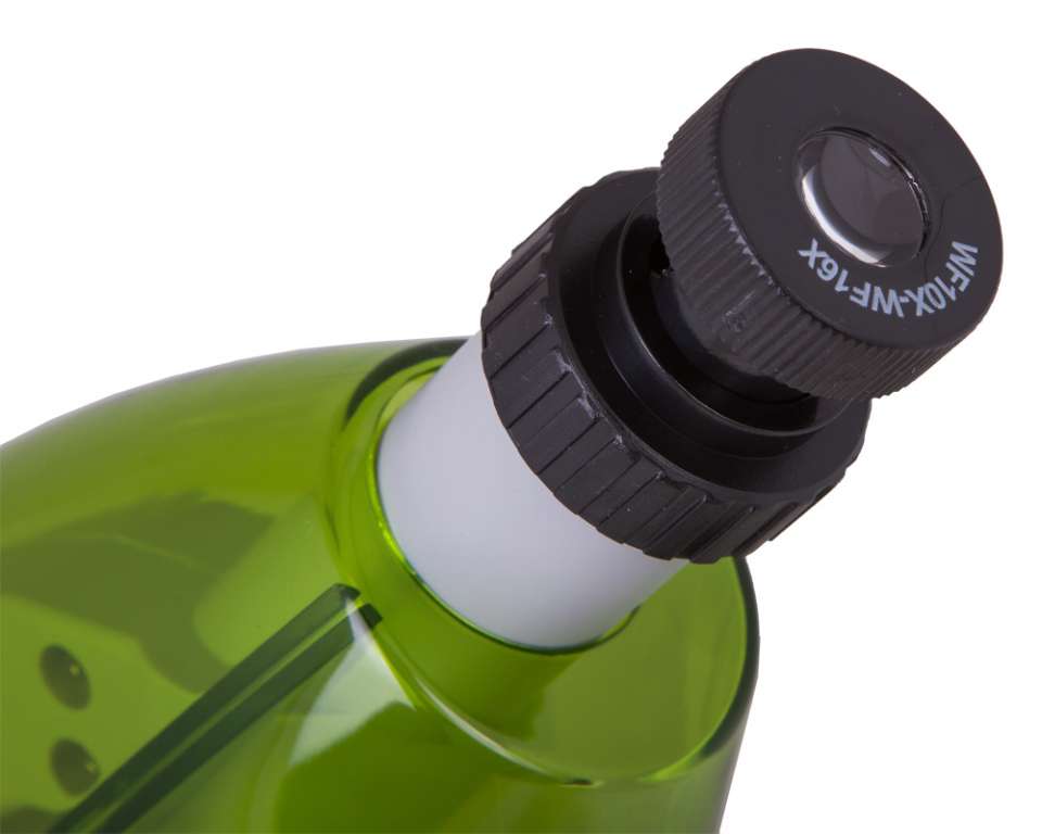 Levenhuk LabZZ 101 LimeЛайм – это детский микроскоп с качественной оптикой, как у «взрослых» моделей. Три объектива установлены в револьверном устройстве, которое позволяет быстро сменить объектив. Выдвижной окуляр имеет две позиции и дает увеличения 10 и 16 крат. Пользоваться таким окуляром очень просто. Микроскоп обеспечивает шесть степеней увеличения: 40, 64, 100, 160, 400 и 640 крат.