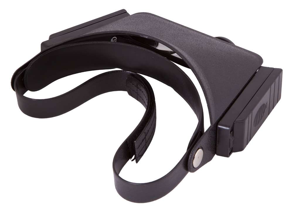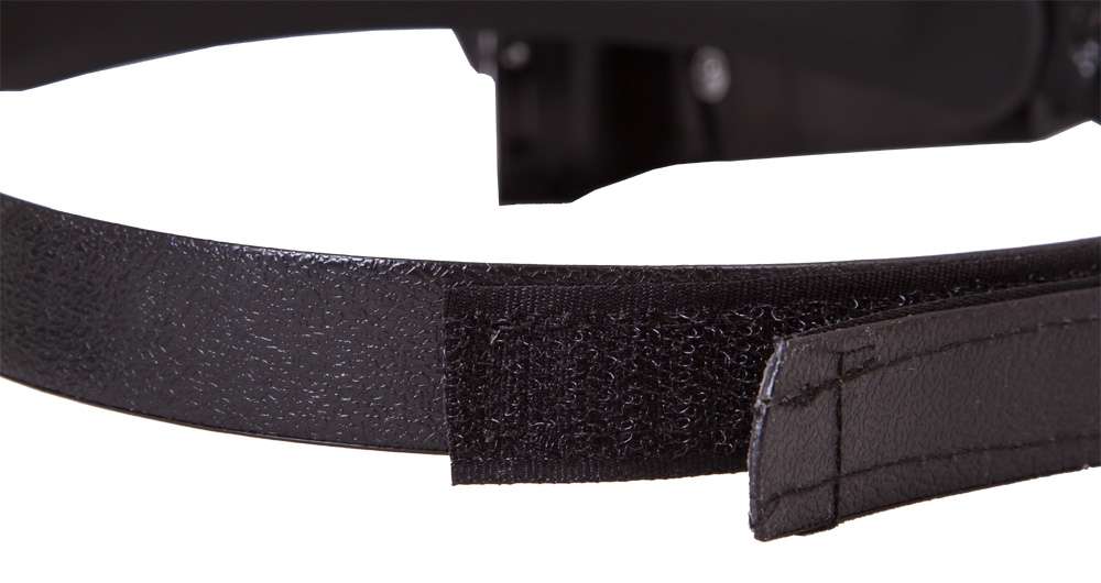 Лупа налобная – она фиксируется на голове при помощи гибкого ремня на липучке. Длина налобного ремня регулируется, поэтому надежно закрепить лупу не составит труда. Для работы в темных или плохо освещенных помещениях лупа имеет встроенную подсветку. Это два ярких светодиода, расположенные справа и слева от основной линзы. Светодиоды работают от батареек типа ААА (в комплект не входят).