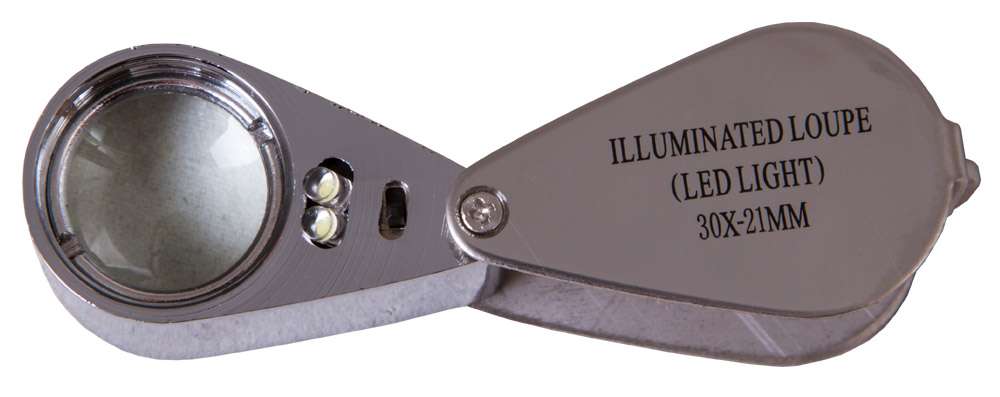 Встроенная подсветка состоит из двух ярких светодиодов. Лампочки расположены в основании лупы и хорошо освещают рабочую область под линзой. Линза изготовлена из стекла, а металлический корпус лупы надежно защищает оптику от повреждений.