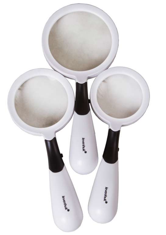 Мультилупа Levenhuk Zeno Multi ML13 – это комплект из 3 луп на ручке. У них разные диаметры линз и увеличение. У каждой лупы есть подсветка из 2 ярких светодиодов с питанием от батареек.