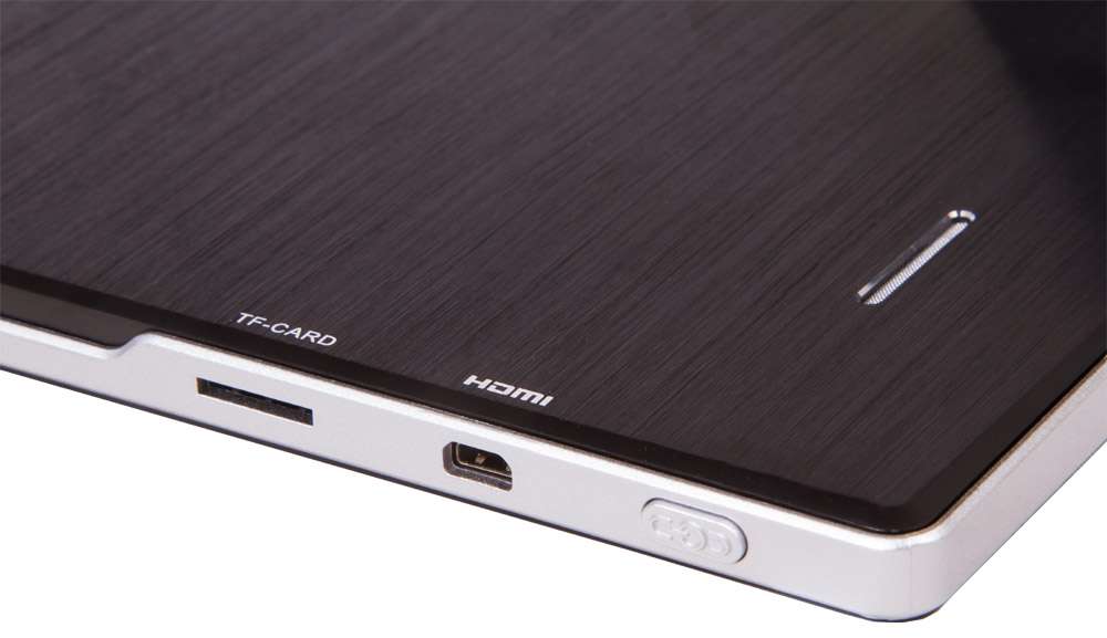 Диагональ ЖК-экрана составляет 9,7", управление сенсорное. К экрану можно подключать наушники, компьютерную мышь и любые внешние устройства, поддерживающие связь через HDMI и USB. Встроенный микрофон позволяет записывать звук, поэтому видеоролики можно сопровождать поясняющими комментариями. Для хранения записей используется внутренняя память устройства или внешние карты памяти (на выбор).