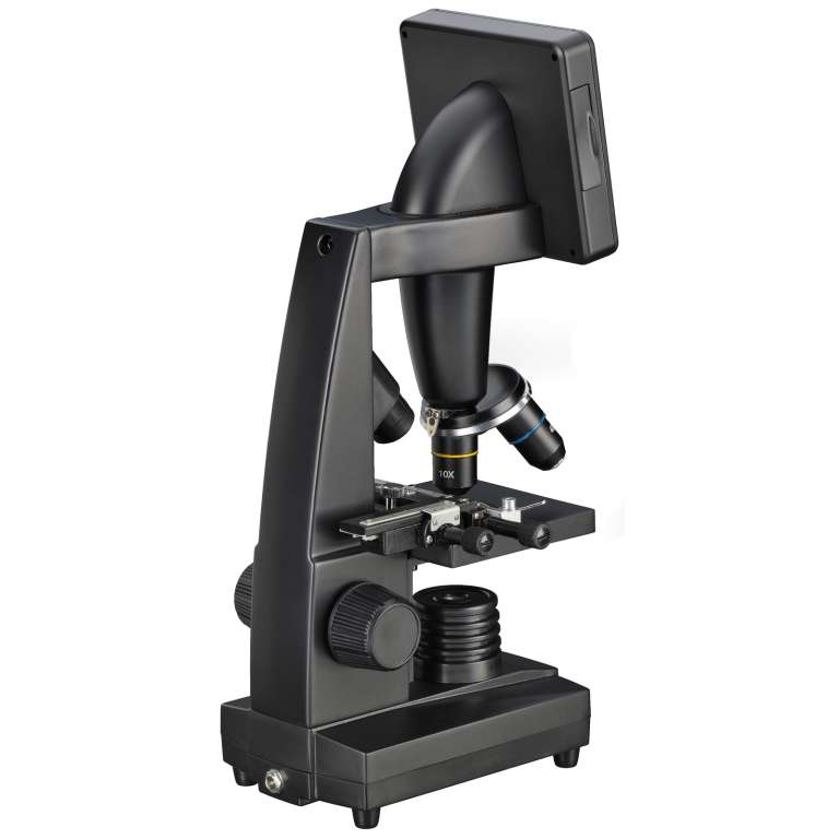 Плоский LCD монитор (3,5") передаёт чёткое цветное изображение, избавляя вас от необходимости контакта с окуляром. Любые проводимые наблюдения можно сохранить в виде фото или видеоролика как во встроенной памяти микроскопа, так и на карте памяти, затем перебросив его с помощью USB-кабеля на персональный компьютер. Кроме того, можно установить определённый интервал фотографирования, что позволяет наблюдать процесс роста микроорганизмов. Режим видео снабжен дополнительными настройками, такими как цветовая коррекция ролика и др.