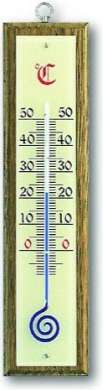 Комнатный термометр. Тип: жидкостный. Минимальная измеряемая температура: -9 °C. Максимальная измеряемая температура: +50 °C. Материал корпуса: дерево (орех). Габариты (ШхВ): 50х205 мм.