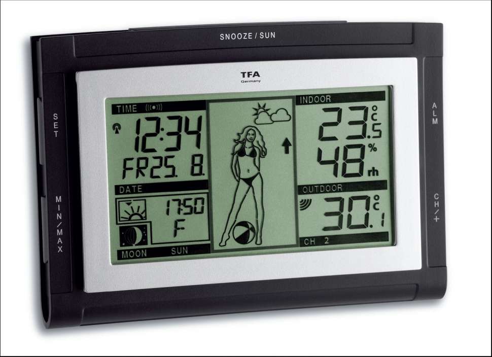 Метеостанция с функиями: часов, будильника даты, термометра(внутренний/наружный),гигрометра,прогноза погоды...