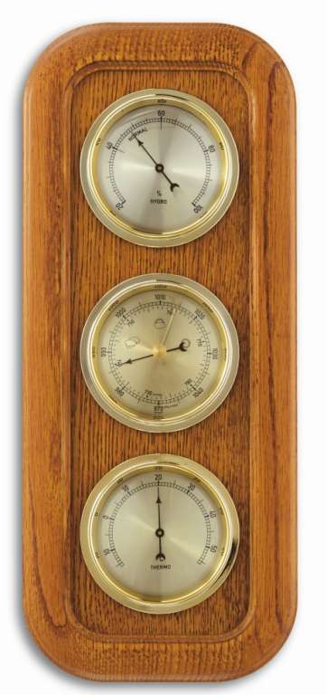 Механическая погодная станция. Установка: настенная. Гигрометр. Барометр ("Domatic"). Термометр. Деревянный корпус. Габариты (ШхВ): 130х340 мм. Цвет: дуб
