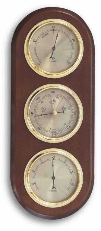 Механическая погодная станция. Установка: настенная. Гигрометр. Барометр ("Domatic"). Термометр. Деревянный корпус. Габариты (ШхВ): 155х380 мм. Цвет: орех.