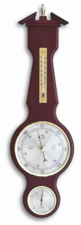 TFA 20104704 - погодная станция, которая станет украшением квартиры или офиса, полезный метеоприбор. На крупном барометре хорошо видно изменение атмосферного давления. Корпус ТFA 20104704 выполнен из натурального дерева вишневого цвета, упакован в красивую коробку