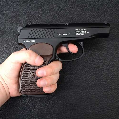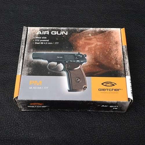 Корпус Gletcher PM выполнен полностью из металла и это создает ощущение, что в руках находится настоящий боевой Макаров. Вес пистолета - 700 грамм, что близко к оригинальной модели пистолета Макарова. Материал рукоятки - пластик и она обеспечивает одновременно удобный и надежный хват.Стрельба осуществляется стальными шариками диаметром 4.5мм, за счет сжатого газа CO2.