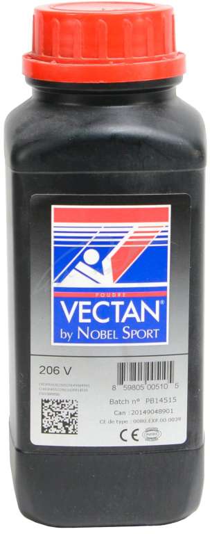 Одноосновной бездымный порох Nobel Sport 206V имеет форму дискообразных гранул диаметром 2,1 и толщиной в пределах 0,3 миллиметра зеленого цвета. Характеризуется высокой скоростью сгорания. Развивает давление в среднем около 600 бар. Насыпная плотность в пределах 500 +/- 20 г/л.