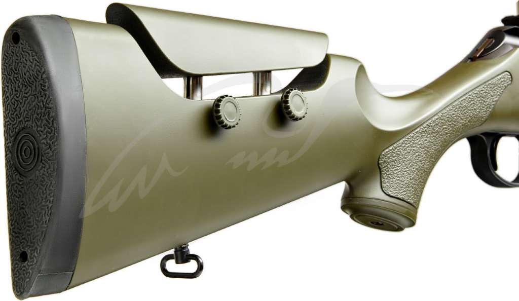 Щека приклада регулируемая. Ложа Soft Touch, есть посадочные места для антабок и сошек.
