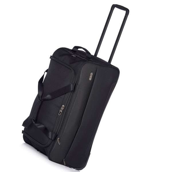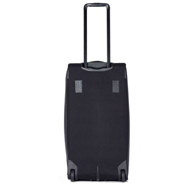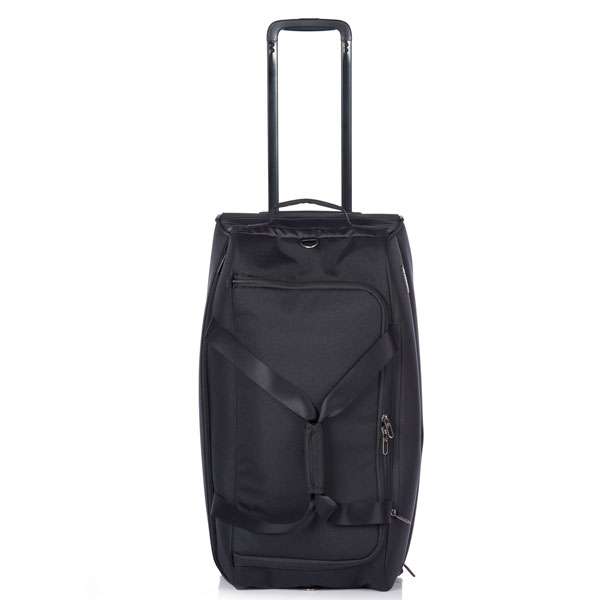 В основе дорожной сумки на колесах лежит облегченный, но необычайно прочный и эластичный полипропиленовый каркас AIR FRAME™ с внешней текстильной оболочкой, двумя колесами большого диаметра, и телескопической алюминиевой ручкой с анодированным защитным покрытием. В сумке предусмотрена верхняя текстильная ручка, с помощью которой удобно загружать/разгружать сумку из багажных отделений, а также сдвоенные основные ручки и наплечный ремень с мягкой регулируемой вставкой. Углы и дно сумки с внешней стороны имеют пластиковые защитные накладки, предупреждающие износ, и защищающее багаж. Более мелкие вещи можно разместить в двух внешних карманах и большом внутреннем сетчатом кармане.