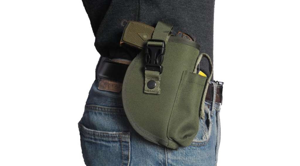 Данная модель R-1 - универсальна для большинства пистолетов, в том числе подходит эта кобура для ПМ. Она плотно прилегает к телу, что делает пистолет практически незаметным, а также обеспечивает быстрое извлечение короткоствольного оружия. Пистолет фиксируется с помощью застежки фастекс, а также кнопки, поэтому при использовании можно использовать оба варианта, что немало важно, ведь часто решающую роль играют считанные секунды, важно вовремя выхватить пистолет. В зависимости от размера пистолета, можно отрегулировать стропу, для надежной фиксации. Запасной магазин можно хранить в специальном кармане, который закрывается на липучке. Поясная кобура крепится к ремню с помощью надежной 5-ти сантиметровой стропы. Ширина вашего ремня не должна превышать 8 см. Разместить кобуру можно с правой стороны: за спиной, ближе к животу или посередине. Для того что бы пистолет плотно сидел, в середине под тканью имеется мягкая вставка. Основная ткань – Oxford. Все швы аккуратно обработаны тесьмой.