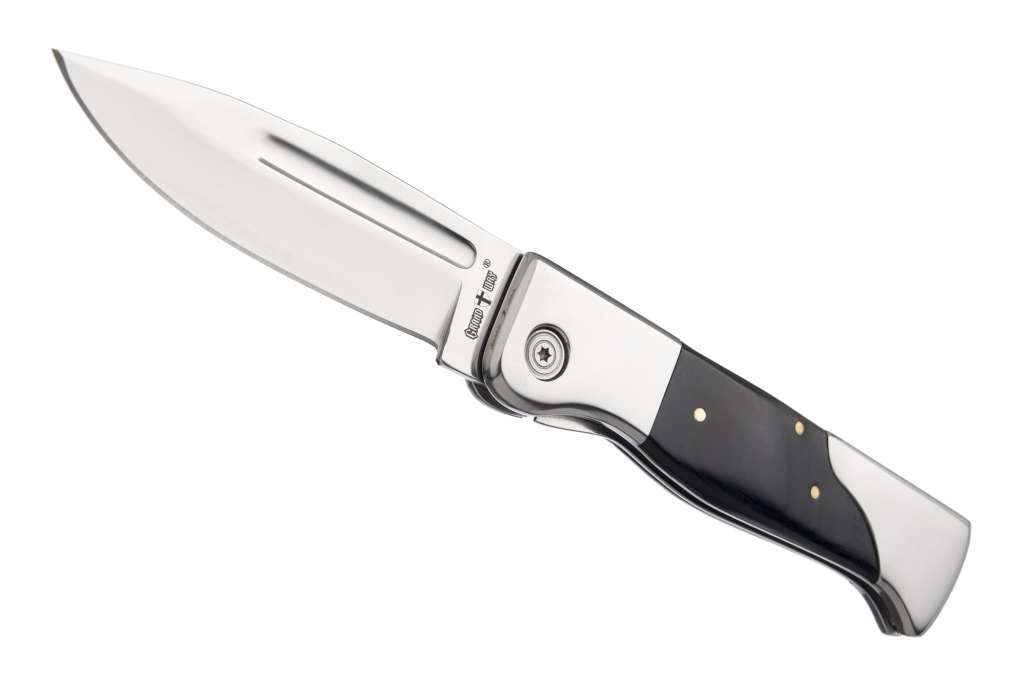 Полированный клинок Grand Way 1226 – с плавным понижением линии обуха и декоративным долом замечательно смотрится и превосходно режет. Немаленький клинок поможет вам в самых различных работах – от нарезки бутербродов на пикнике или вскрытия упаковки, до каких-то элементарных работ в несложном походе.