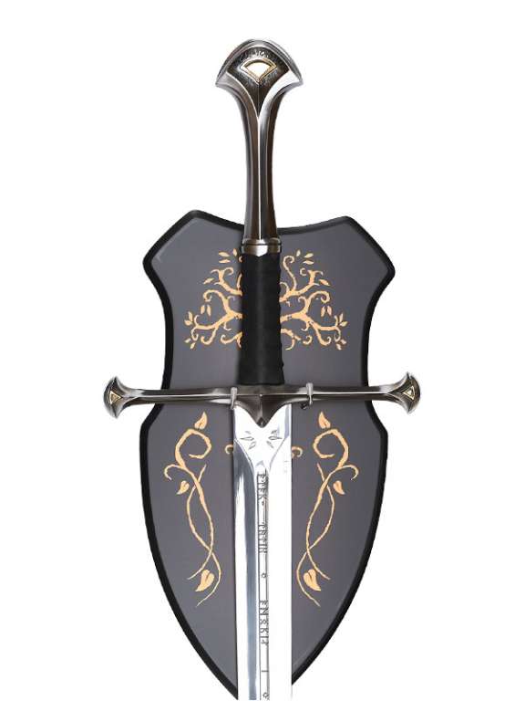 В комплекте с мечом идёт предназначенное для его закрепления на стене панно, украшенное геральдическим изображением Белого Древа, символом Гондора и его королей.