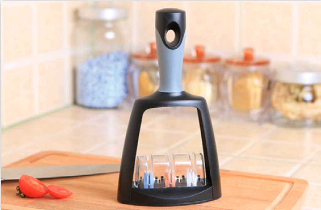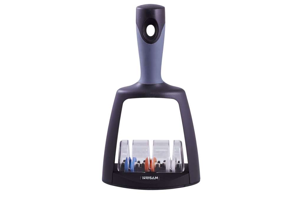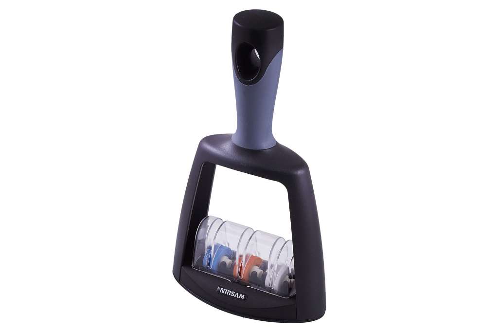 RM 007 – отличный вариант ножевой точилки для бытового использования, в которой сочетается простота использования, несложность конструкции и компактность. При этом в ее корпус заключено несколько абразивных элементов, позволяющих работать с клинками кухонных ножей, находящихся на различных стадиях затупления.