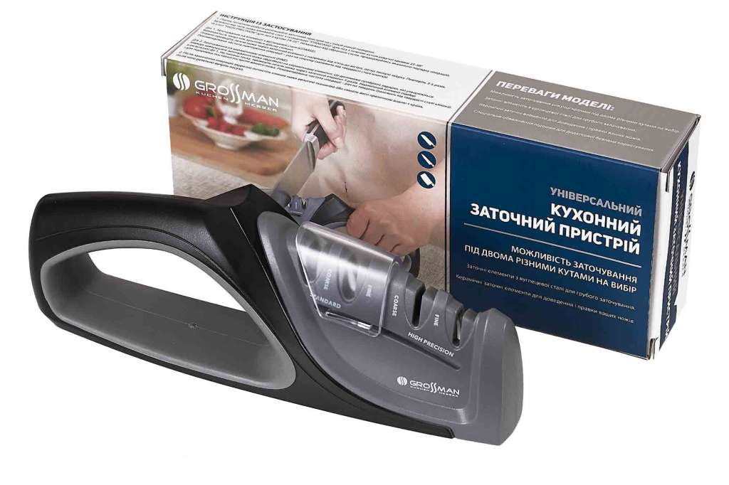 Каждая из разновидностей является двухэтапной – от грубой обработки до финишной заточки. Соответственно, выемки оснащены стальными твердосплавными и керамическими абразивами с различающимися показателями зернистости, что повышает эффективность заточки клинков.