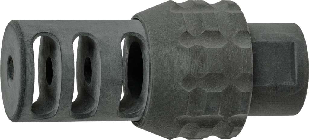 Данная модель также предусматривает монтаж саундмодератора на ДТК. Для этого под защитной гайкой есть резьба М27х1,5. Наиболее эффективно в связке ДТК-саундмодератор будут работать модели ASE UTRA серии Dual.
