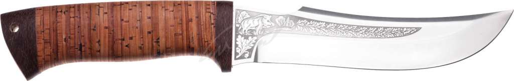 Модель АиР "Клык" – крупный универсальный, прочный нож с хищным клинком, имеющим вогнутые линзовидные спуски от середины ширины клинка. Клинок толщиной обуха в 3,7 мм имеет прогнутое фальшлезвие на три четверти длины клинка и может быть использован для рубки мелких костей и хрящей. Сквозной монтаж неразборной рукояти обеспечивает необходимую прочность конструкции. Нож идет в комплекте с кожаными ножнами. В зависимости от модели рукоять может быть выполнена из полосок натуральной кожи, дерева или комбинированных материалов. "Клык" идеально подойдет для большинства видов работ в лесу.