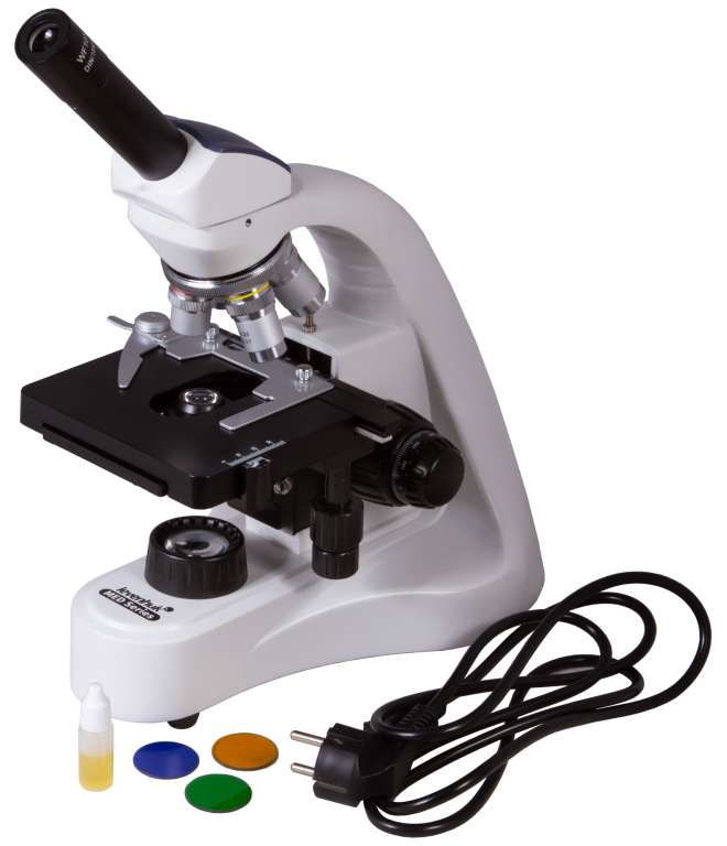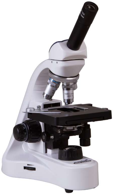 В Levenhuk MED 10M используется ахроматическая оптика, которая передает четкое и контрастное изображение. Монокулярная насадка наклонена под углом в 45° и может поворачиваться вокруг своей оси на 360°. Микроскоп удобно использовать при групповых исследованиях, а также для длительного изучения образцов.