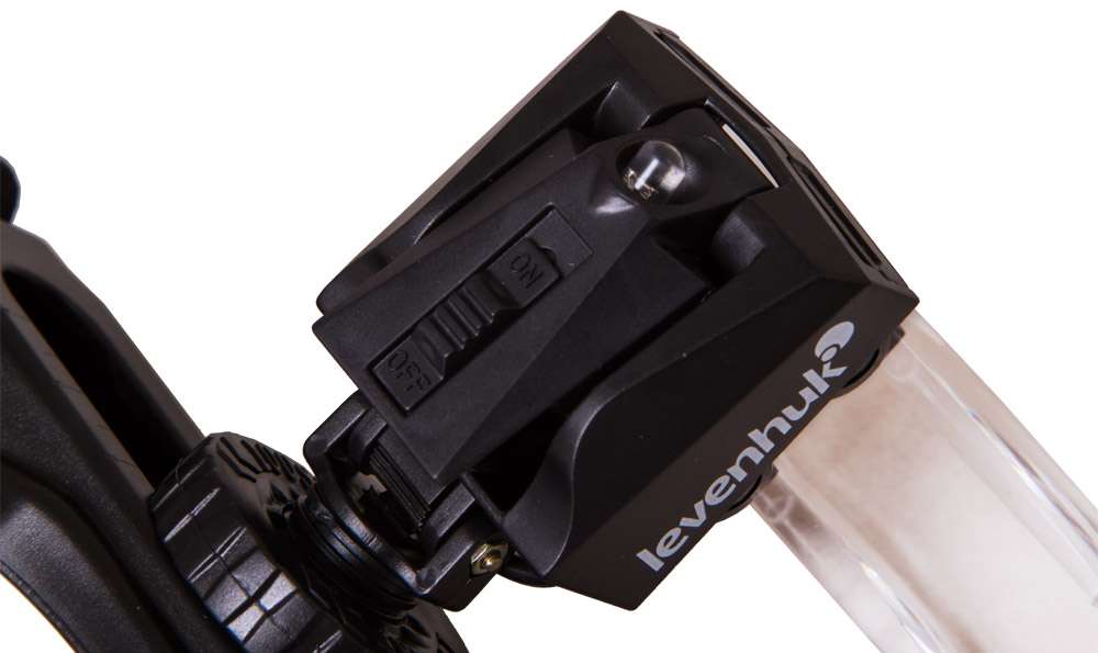 Лупа Levenhuk Zeno Vizor H4 фиксируется на голове при помощи эластичного крепления. Его длину можно регулировать. В передней части лупы расположен держатель линз со встроенной светодиодной подсветкой. На держатель можно установить одну или несколько линз из прилагаемого комплекта. Во время работы линзы можно смещать в сторону или отворачивать наверх для изучения рабочей области невооруженным взглядом.