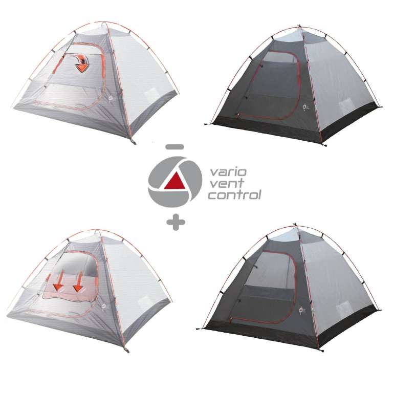 Эффективная вентиляция VARIO VENT CONTROL на входе во внутреннюю палатку, обеспечивает комфортный микроклимат при любых погодных условиях. Регулировка интенсивности вентиляции осуществляется при помощи дверной шторы, расположенной на внутренней палатке.
