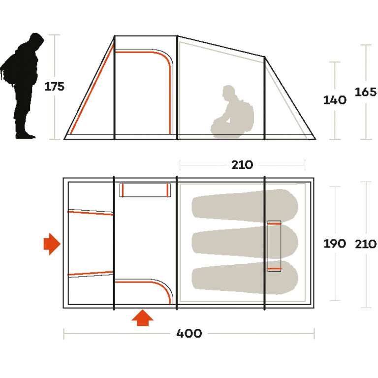 Внешняя палатка (ДхШхВ), мм: 4000 х 2100 х 1750