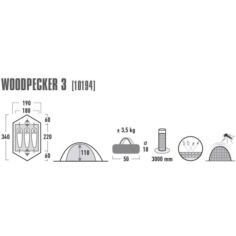 Туристическая двухслойная, 3-ох местная палатка High Peak Woodpecker имеет одну из самых популярных конструкций среди туристических палаток. Палатка имеет два раздельных, противоположных входа которые не просто создают удобство при эксплуатации но и способствуют эффективной вентиляции в жаркое время года. Антимоскитные сетки, легкий вес, вентиляционный клапан, простая установка, все это делает данную модель одной из самых популярных в своем классе.