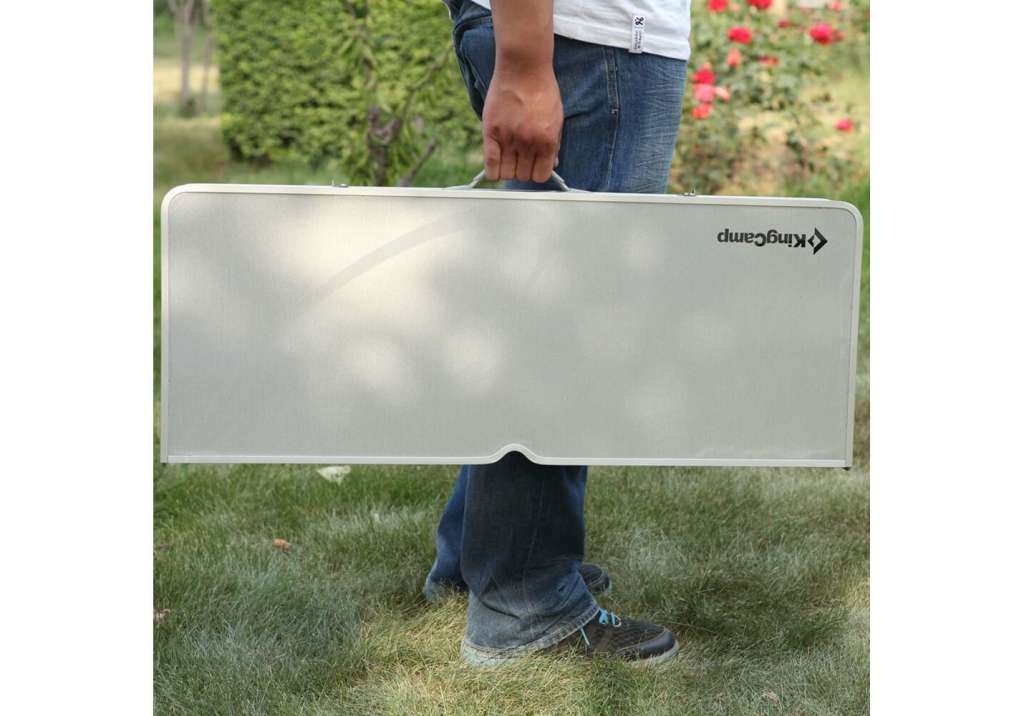 Набор мебели KingCamp Delux Picnic Set отлично подойдет для организации обеденной зоны на даче, пикнике или на рыбалке. Каркас стола и стульев изготовлен из прочного алюминиевого сплава, столешница - из ламинированного МДФ, который не впитывает влагу и запахи, для поддержания столешницы в чистом состоянии достаточно протереть ее влажной салфеткой. Раскладывается и складывается одним человеком за считанные минуты без использования инструментов. Основное преимущество данного набора это его компактность, в сложенном виде представляет собой чемоданчик со складывающейся ручкой для удобства при транспортировке, а открыв чемодан и разложив получается полноценный обеденный стол и четыре удобных табурета. Посередине столешницы предусмотрено отверстие, предназначенное для зонтика от солнца.