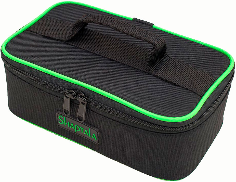 Сумка Shaptala для грузил предназначена для хранения и транспортировки грузил, кормушек и других снастей. По периметру сумки вшита пена. Внутри сумки есть усиленные пластиком съемные перегородки, они делят сумку на шесть частей. Пластик в перегородках не позволяет грузам перекатываться из одного отделения в другое. Крепления перегородок к стенкам сумки спроектированы так, чтоб перегородка не отстегивалась под весом грузов при переворачивании сумки. Ручка для переноски сумки дополнительно усилена лентой.