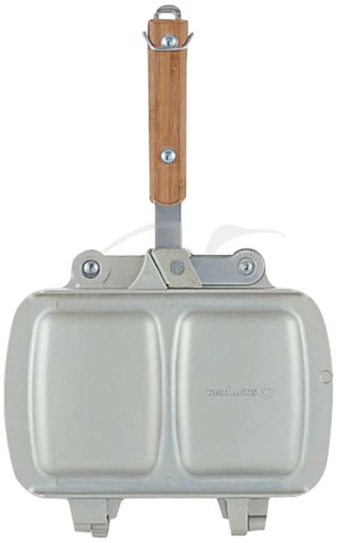 Тостер Snow Peak Tramezzino поможет сделать завтрак из обычных бутербродов более вкусным. С его помощью можно быстро сделать горячие бутерброды, яичницу и другие блюда на гриле или газовой плите. Две половины бутербродницы, выполненные из алюминиевого сплава со специальным кремниевым покрытием, обладают высокой теплопроводностью, исключают пригорание пищи, легко моются и могут использоваться каждая по отдельности в качестве небольших сковородок. Ручки с бамбуковыми накладками не обжигают руки и компактно складываются для транспортировки.
