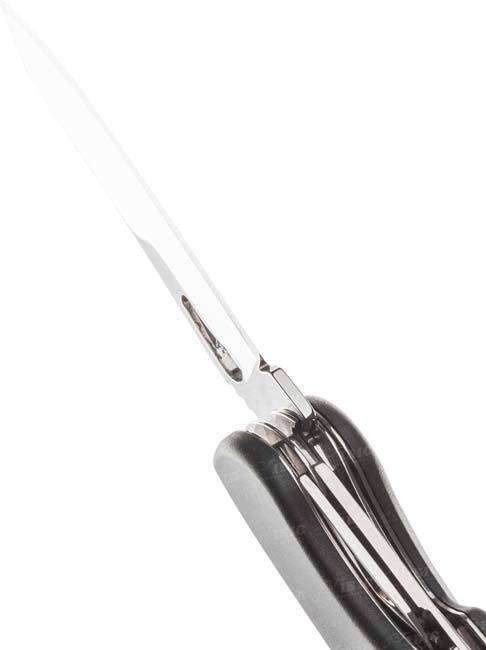 Клинок длиной 80 мм выполнен из отполированной нержавеющей стали 3Cr13. Имеется ряд нововведений: