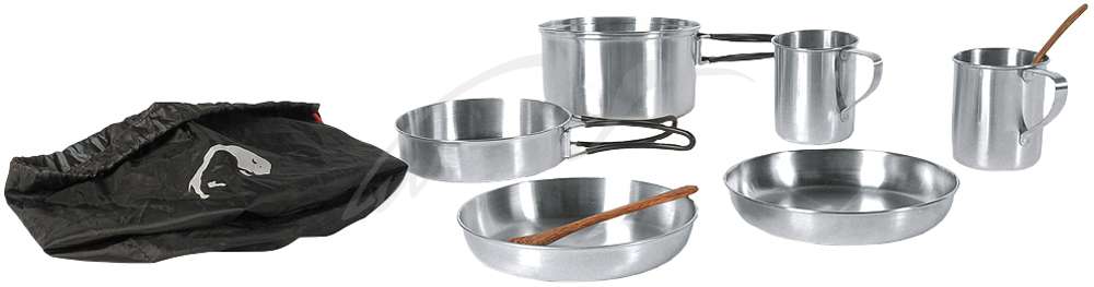 Набор посуды Tatonka Picnic Set – идеальный комплект, который вмещает всё, что необходимо для пикника на двоих. Сковорода, кастрюля 1.3 литра со складными ручками, по две миски, чашки и ложки помогут создать чувство комфорта, находясь на природе далеко от дома. Посуда выполнена из нержавеющей стали 18/8, которая не окисляется под воздействием любых продуктов и позволяет готовить пищу на горелке. Кастрюля и чашки внутри имеют специальную мерную шкалу для определения объёма налитой жидкости. Набор посуды Tatonka Picnic Set компактно складывается в транспортировочный чехол, имеет небольшой вес и занимает мало места.