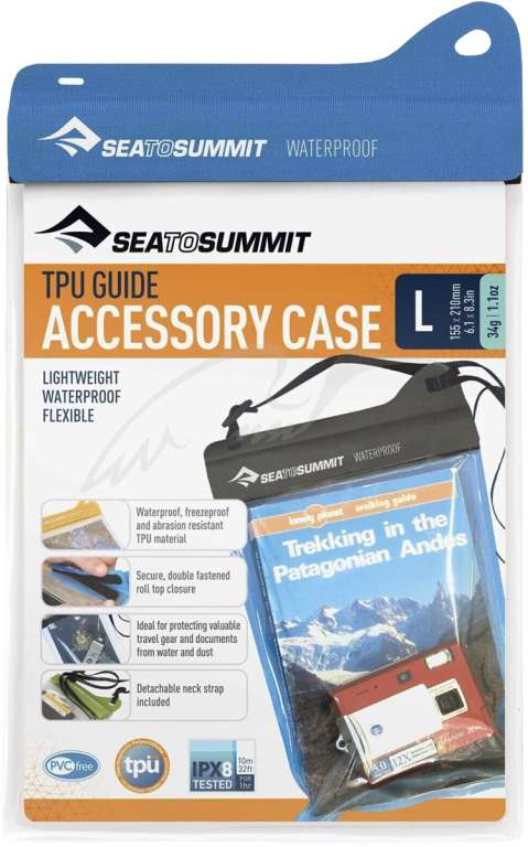 Герметичные чехлы Sea To Summit TPU Guide Accessory Case - удобные, прочные, водонепроницаемые чехлы для различного примененения. Сделаны из прозрачного термопластичного полиуретана - Thermoplastic Polyurethane TPU, который защищает от УФ лучей и стойкий к сильному морозу. То есть его можно использовать зимой, сгибать и разгибать без повреждения структуры пластика. Прочная и водонепроницаемая застежка Zip-lock также защитит от пыли и грязи. Гермопродукция прошла тестирование и имеет степень защиты IPX8 - может пребывать около часа на глубине до 10 метров.