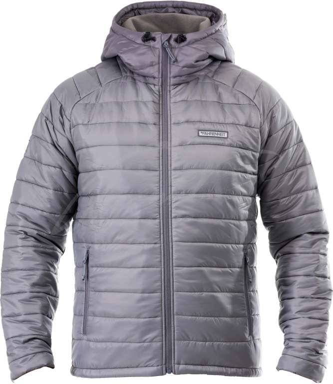 Куртка Fahrenheit Joker Hoody – новинка 2019 року. Розрахована для носіння в холодну пору року. Завдяки вільному крою і водовідштовхувальним просочення DWR (Durable Water Repellent) одяг рекомендована до застосування рибалками і туристами, а сучасний стиль дозволяє носити її і повсякденно. Зовнішня тканина куртки з Gelanots Nylon 100 % щільністю 36g/m2 – дуже міцного і легкого матеріалу, довго зберігає первинний зовнішній вигляд виробу. Підкладка виконана з того ж матеріалу, що і зовнішня сторона. Наповнювачем служить сучасний і дуже ефективний матеріал PrimaLoft Silver - Polyester 100%, який забезпечує максимальну теплозахист користувача при досить невысом питомій вазі. Куртка забезпечена утепленим капюшоном з стяжками, який здатний виконувати роль повноцінного головного убору, що захищає власника від вітру і холоду. Поділ куртки також має утяжки. Два бічних кишені на блискавках можуть вміщати рукавички або інші дрібні речі. Також є внутрішня кишеня на блискавці для документів. Куртка Fahrenheit Joker Hoody може стати прекрасним вибором для активних людей, що займаються спортом, риболовлею або туризмом.