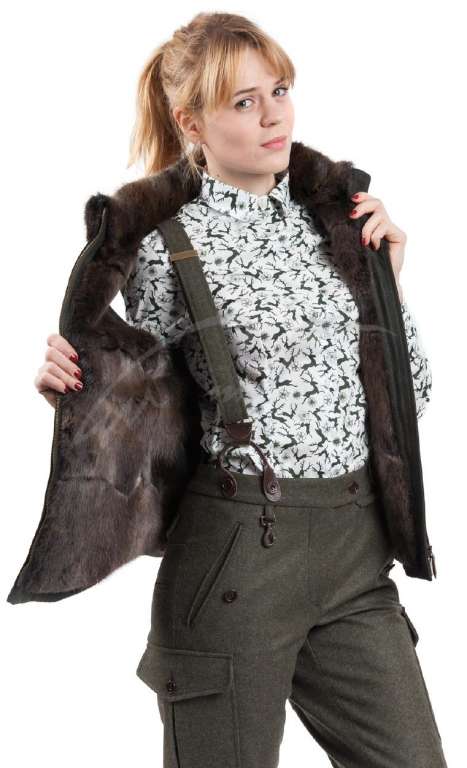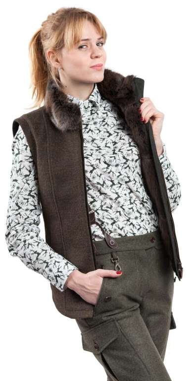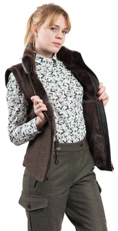 Воротник декорирован мехом ондатры как и внутренняя сторона жилета.