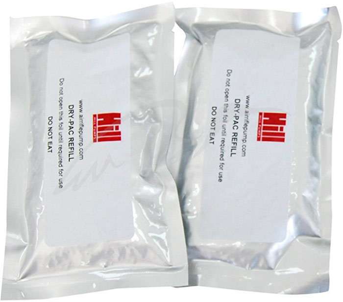 Набор осушения воздуха для насосов высокого давления Hill представляет собой дополнительный резервуар, через который осуществляется забор воздуха в насос, установочный комплект и специальный абсорбент Dry-Pac.