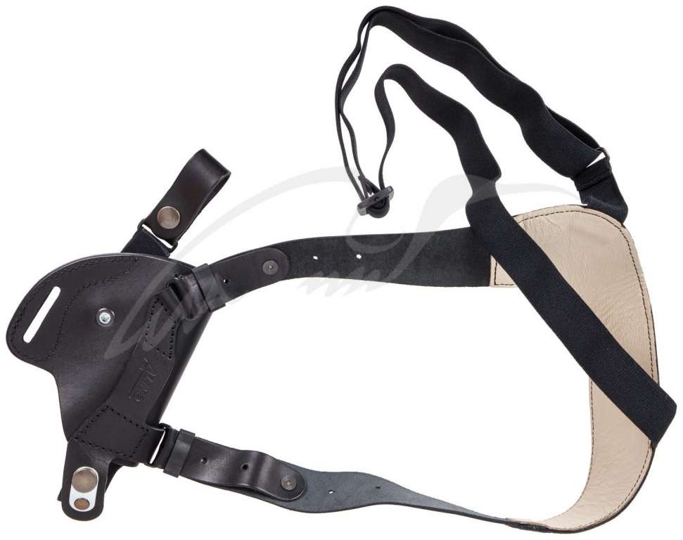 Подплечная кобура отечественного производства формуется под конкретный вид оружия и регулируется под индивидуальный размер. В зависимости от модели возможны вариации цвета - черный и коричневый. Изготавливается для левой или правой рабочей руки. Комплектуется съемными креплениями к поясу с эластичными элементами.