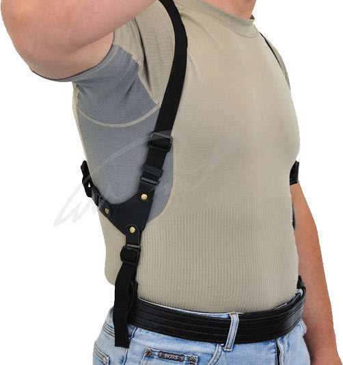 Подплечная кобура отечественного производства формуется под конкретный вид оружия и регулируется под индивидуальный размер. В зависимости от модели возможны вариации цвета - черный и коричневый. Изготавливается для левой или правой рабочей руки. Комплектуется съемными креплениями к поясу с эластичными элементами.