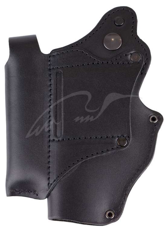 Данная кобура обладает двумя конструкционными особенностями. Во-первых, она может быть закреплена на поясе посредством пропуска ремня через прорезь с другой стороны кобуры или, при помощи скобы, внутри брюк для скрытого ношения. Во-вторых, в кобуре есть карман для дополнительного магазина.