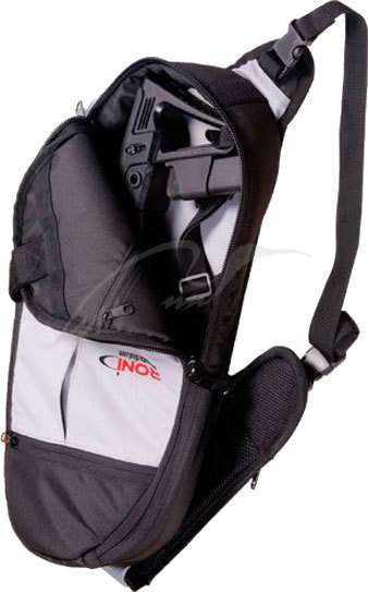 Одна стропа позволяет переносить чехол в положениях «через плече» или на одном плече с возможностью быстрого доступа к оружию.