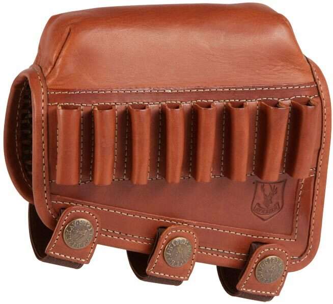 Патронташ на приклад Riserva R6083 с интегрированным упором для щеки. Изготовлен из натуральной кожи, с ячейками под нарезные патроны основных калибров. Выпускается в трех размерах S - 1,5 см высотой, M - 2,5 см высотой, L - 5 см высотой. Есть версии для правши и для левши.
